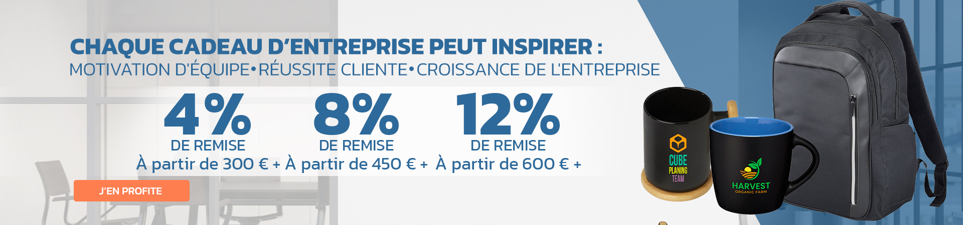 Des cadeaux promotionnels adaptés à chaque occasionNous proposons des cadeaux promotionnels adaptés à chaque occasion, que vous recherchiez un article promotionnel pour un salon, un événement d'entreprise ou que vous souhaitiez simplement montrer votre appréciation. Outre les stylos à bille et les tasses, nos cadeaux les plus populaires comprennent également des vêtements promotionnels, des articles techniques, des sacs, des porte-clés et bien d'autres encore. Tous les articles promotionnels peuvent être personnalisés individuellement, afin de rendre votre entreprise immédiatement reconnaissable.