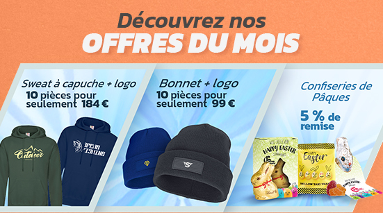 Des cadeaux promotionnels adaptés à chaque occasionNous proposons des cadeaux promotionnels adaptés à chaque occasion, que vous recherchiez un article promotionnel pour un salon, un événement d'entreprise ou que vous souhaitiez simplement montrer votre appréciation. Outre les stylos à bille et les tasses, nos cadeaux les plus populaires comprennent également des vêtements promotionnels, des articles techniques, des sacs, des porte-clés et bien d'autres encore. Tous les articles promotionnels peuvent être personnalisés individuellement, afin de rendre votre entreprise immédiatement reconnaissable.